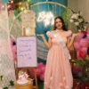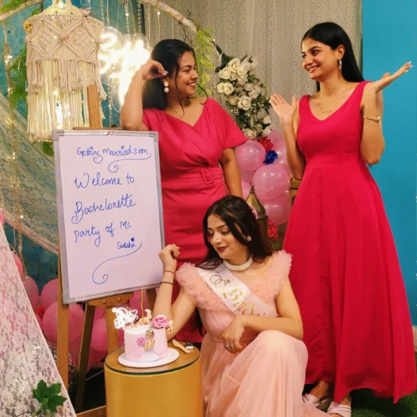 - Theme: Bohemian garden setup with dream catchers, white drapes, and artificial flowers