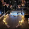A romantic and visually stunning proposal setup designed with glowing lights, floating balloons, and heart-shaped details. Perfect for creating an unforgettable “Marry Me” moment.