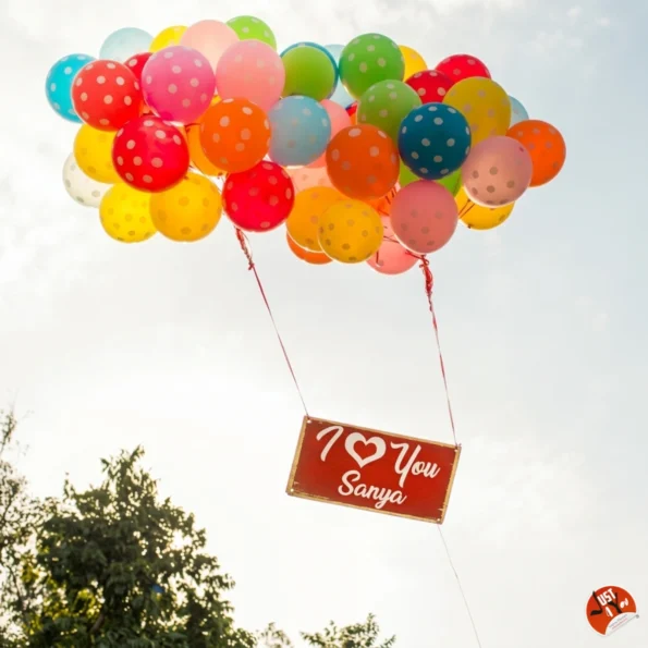 Setting up the Flying Message is quick and easy. The balloons are securely tied to the message, ensuring that it floats perfectly without tangling. We also offer delivery services to ensure that your surprise reaches the recipient in perfect condition.