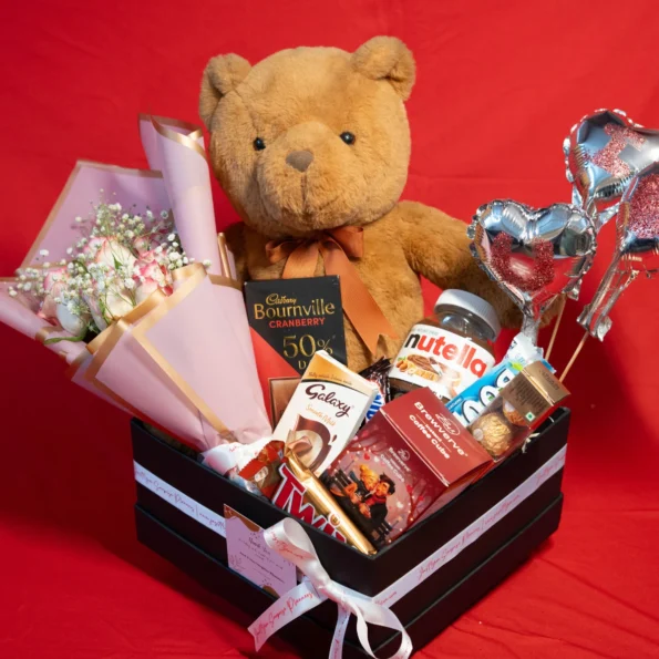 A thoughtfully curated gift hamper designed to express love and warmth. Featuring a soft teddy, premium chocolates, and elegant presentation, this hamper is perfect for surprising your special someone.