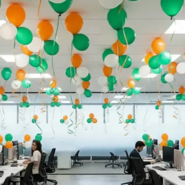 Using the classic Indian tricolor theme, this ceiling balloon decoration adds energy, pride, and celebration to the office without disturbing daily operations. It is ideal for teams that want to celebrate Independence Day with simplicity and impact.