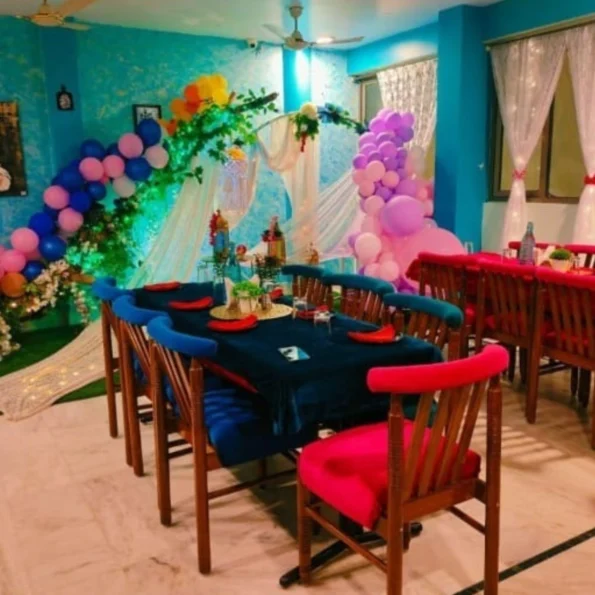 Elevate your evening with a Romantic Candlelight Dinner in Andheri East. Enjoy a beautifully decorated indoor table setup with flowers, candles, and balloon decorations, creating an intimate ambiance. Relish a 3-course meal featuring two starters, two main courses, and two desserts, along with a welcome drink. Experience personalized service with a private butler and soothing background music.