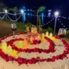 Enhance your stay with a charming outdoor candlelight dinner décor setup, creating a magical evening under the stars. The setup features elegant candle arrangements, rose petals, and aesthetic props that set the perfect romantic mood. Paired with delicious BBQ, dinner, and breakfast, this experience offers the perfect combination of relaxation, adventure, and celebration.