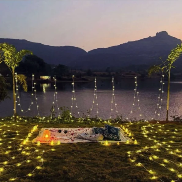 Enhance your experience with a charming outdoor occasion décor setup, thoughtfully arranged to celebrate your special moments. Whether it’s a proposal, anniversary, or birthday, the setup includes a themed backdrop with elegant décor elements and LED letter options like “Marry Me,” “Happy Anniversary,” or “Happy Birthday.” Combined with BBQ, dinner, and breakfast, this experience offers the perfect mix of relaxation, romance, and celebration.