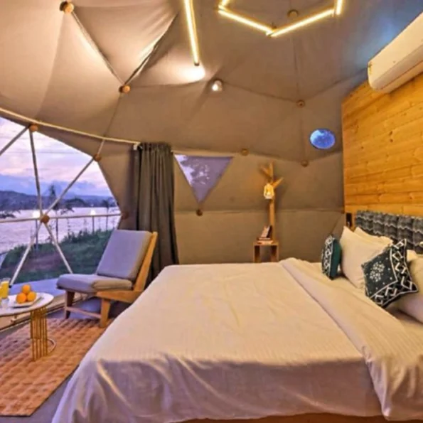 Experience a perfect blend of nature, comfort, and celebration with our Luxury Dome Stay with Outdoor Occasion Décor Experience. Spend a relaxing night in a beautifully designed luxury dome surrounded by serene views, offering the ideal escape from the hustle of daily life. Enjoy warm hospitality with welcome snacks, a cozy bonfire, stargazing under the open sky, and access to lake activities like boating—making your stay both peaceful and memorable.