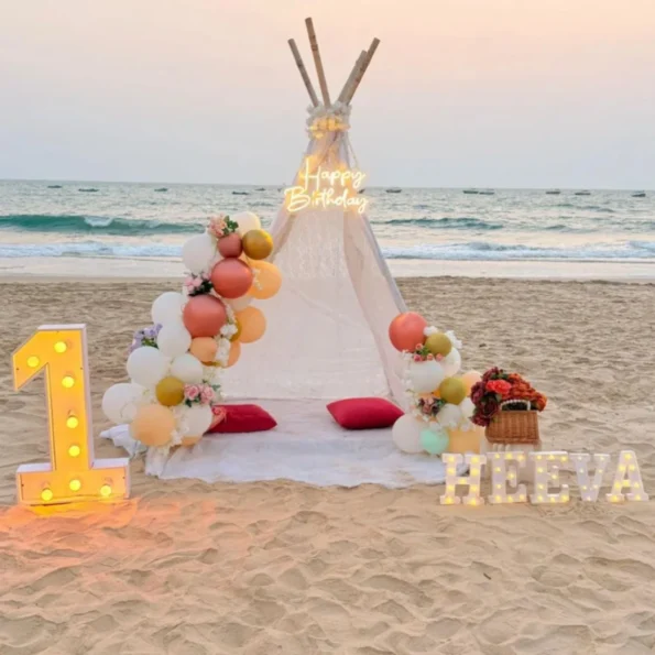 A serene beachside celebration set at a premium beach shack, where candlelight, ocean breezes, and soft moments come together. Ideal for intimate birthdays, anniversaries, proposals, or romantic surprises by the sea.
