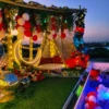- Theme: Bohemian garden setup with dream catchers, white drapes, and artificial flowers