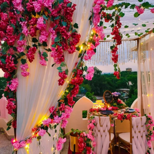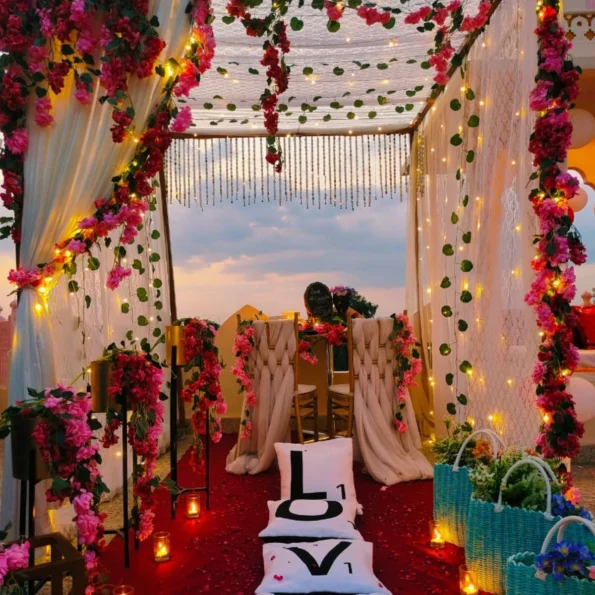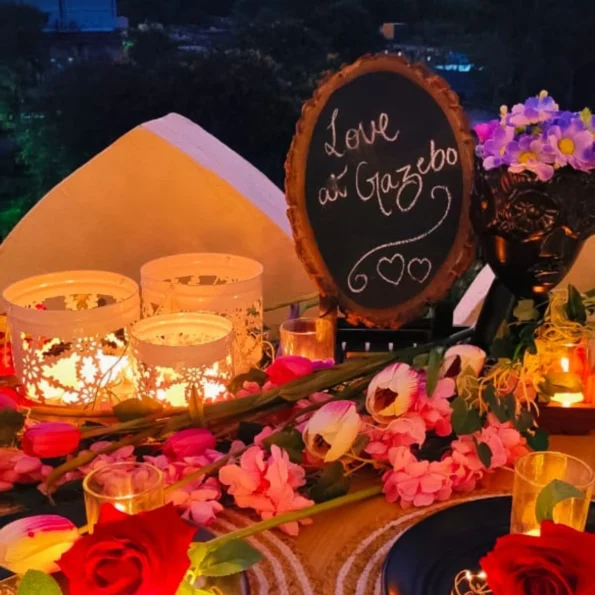 Experience a magical evening with our Private Canopy Dining in Noida. Enjoy a beautifully decorated cabana setup complete with rose petals, glass candles, and fairy lights. The evening includes a welcome drink, a 3-course meal (with a choice of veg or non-veg), and personalized butler service. Perfect for a romantic date or a special celebration.