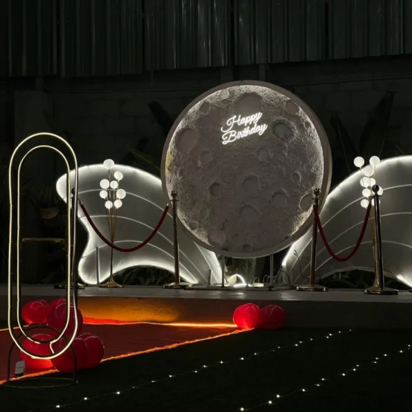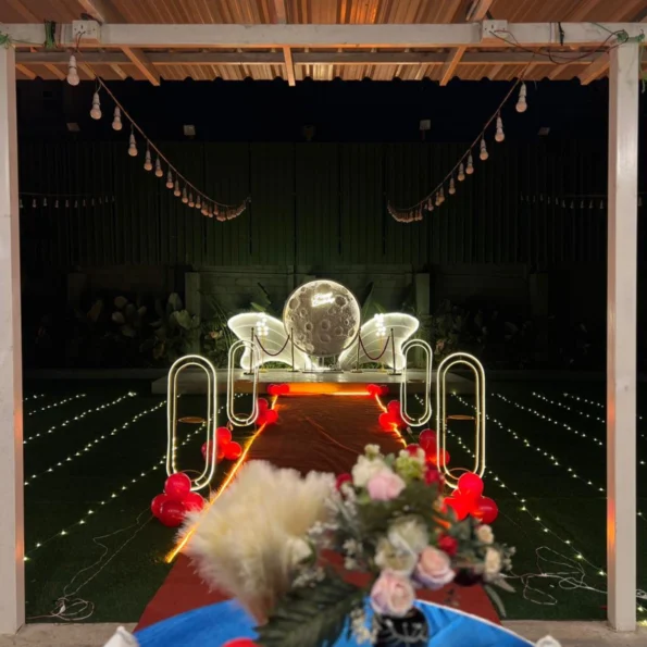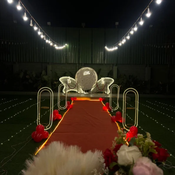 Create a magical and unforgettable proposal with a private, romantic setup designed to impress. From candlelit décor and fairy lights to a grand moon backdrop, fog entry, and cold pyros, every detail is curated to make your “Marry Me” moment truly extraordinary.