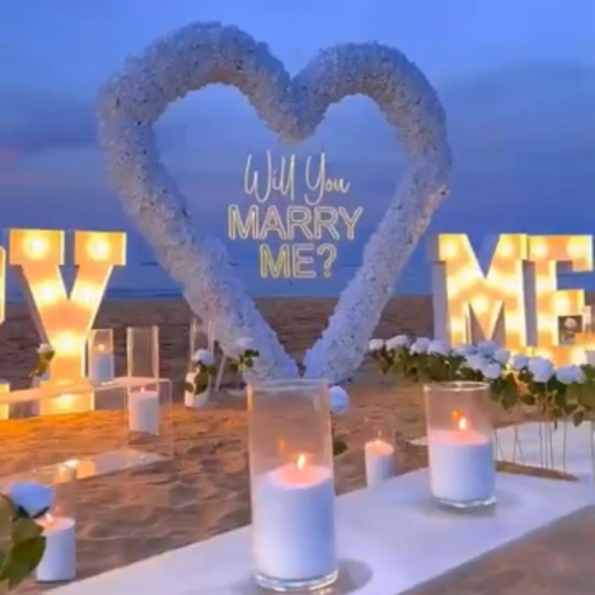 White Heart Proposal with Marry Me LED Letters